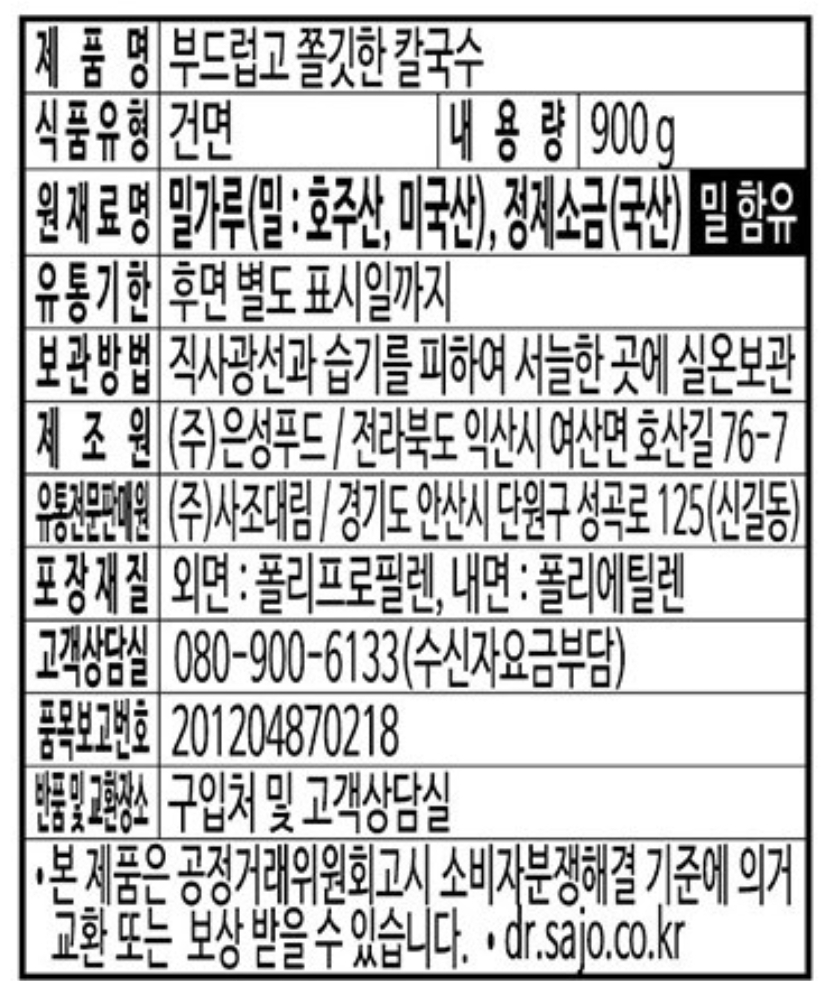 다른 모 회사의 칼국수와 다른 점은, 이 제품은 건면 100그램당 나트륨(소디움, sodium)이 약 1.1그램이라는 점. 적습니다. 장점이라고 생각합니다.