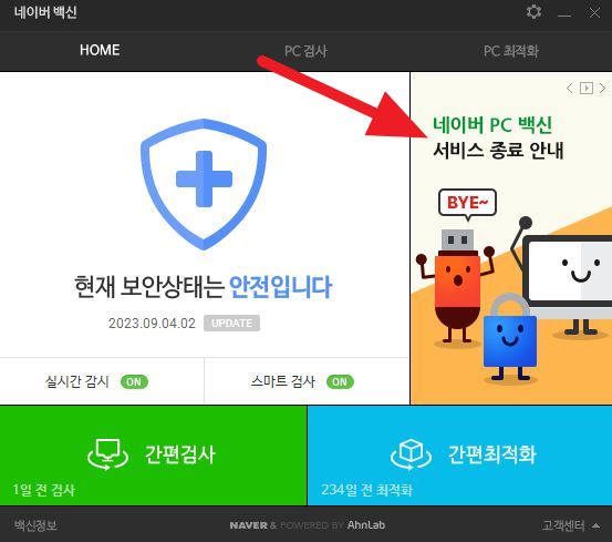 아쉽게도 네이버 PC 백신 서비스가 2023년 11월30일(목) 부로 서비스를 종료하게 되었습니다.