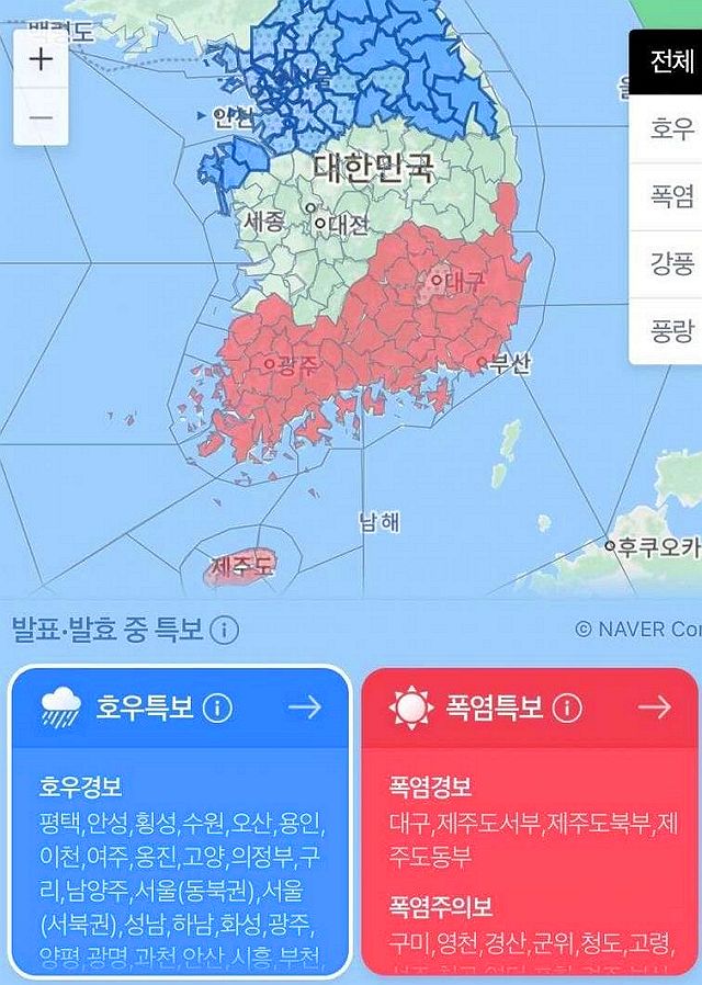 한국의 삼색기후라던 일기예보그림 하나 본문