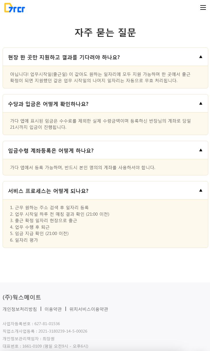 웍스메이트 - 가다 | 비대면 건설인력 중개 플랫폼 일용직 일자리 어플 노가다 갤러리 일당 당일