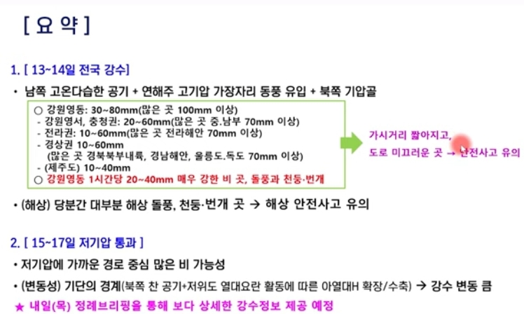 단기예보. 13일 저녁기준