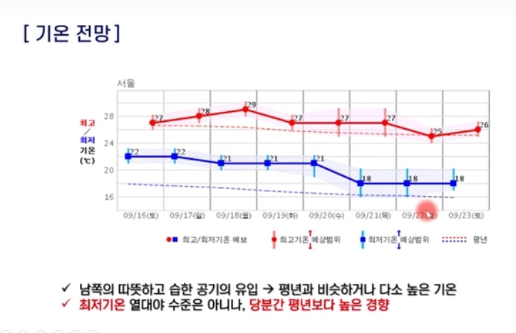 | 2023.9.15.금.~ 9.24.일. 서울-대전 주말날씨, 중기예보 (기상청): 일요일까지 비. 이후 소나기 가능 (0) | 2023.09.15 |