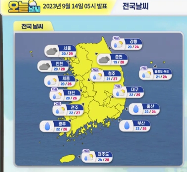 2023.9.14.목. 흐림. 금~일 서울대전 비 본문