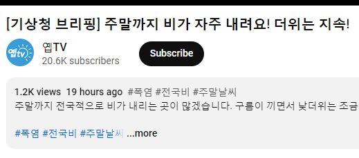 이 영상은 어제 올라온 것입니다. 그래서 19시간 전에 올라왔음을 알 수 있죠. 대강 어제 저녁.