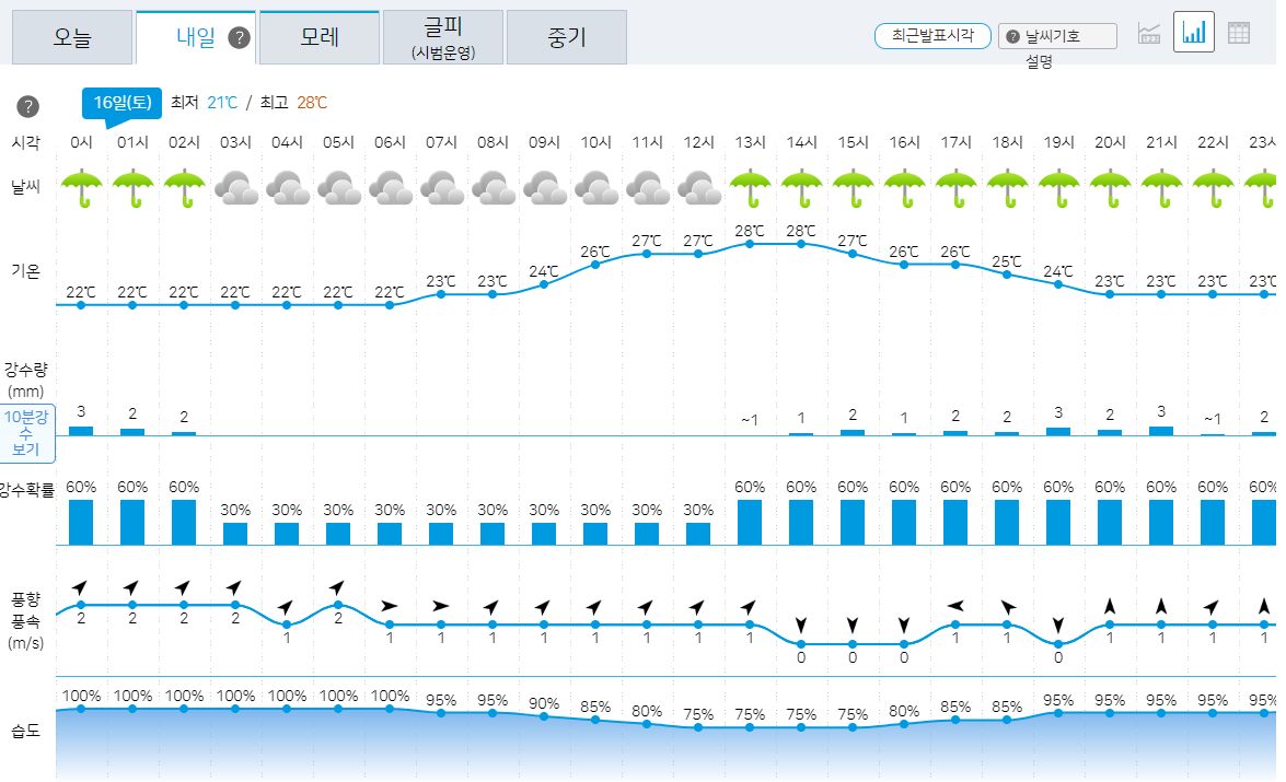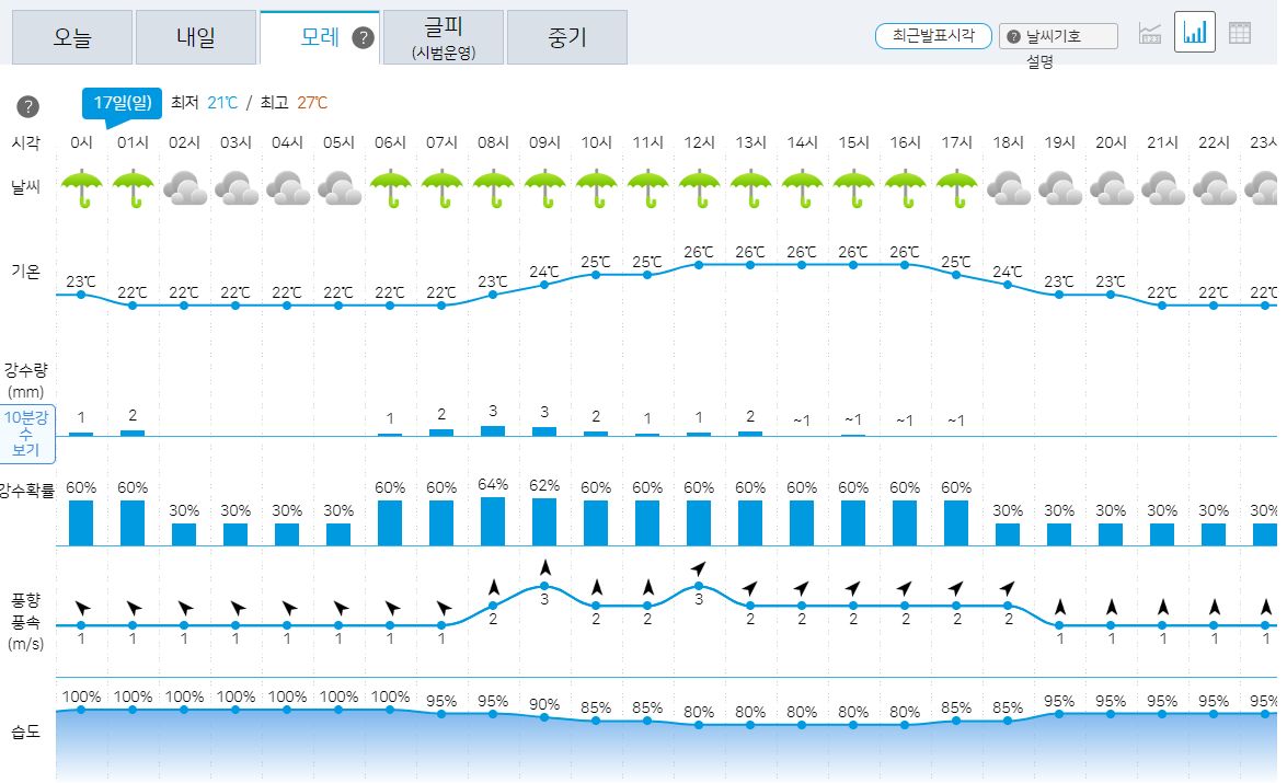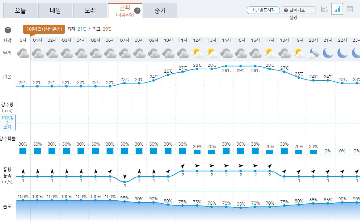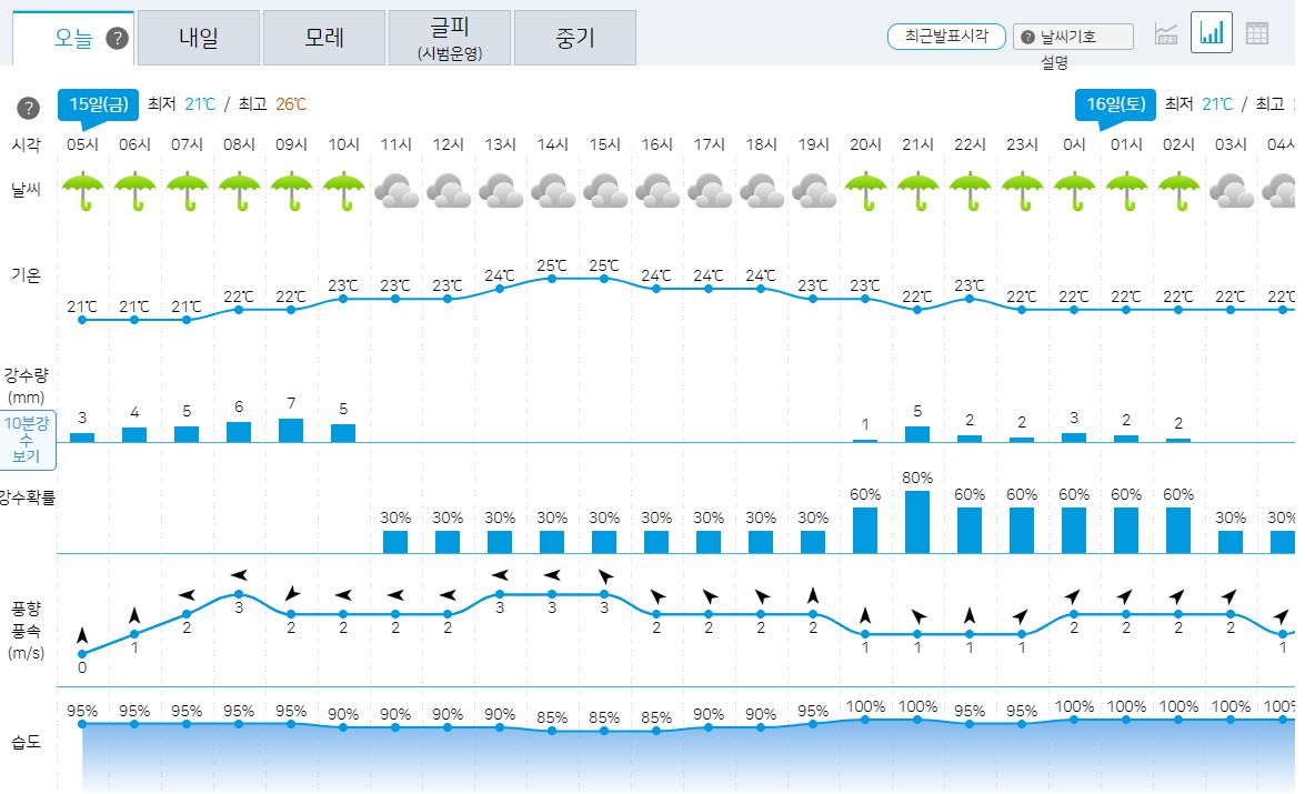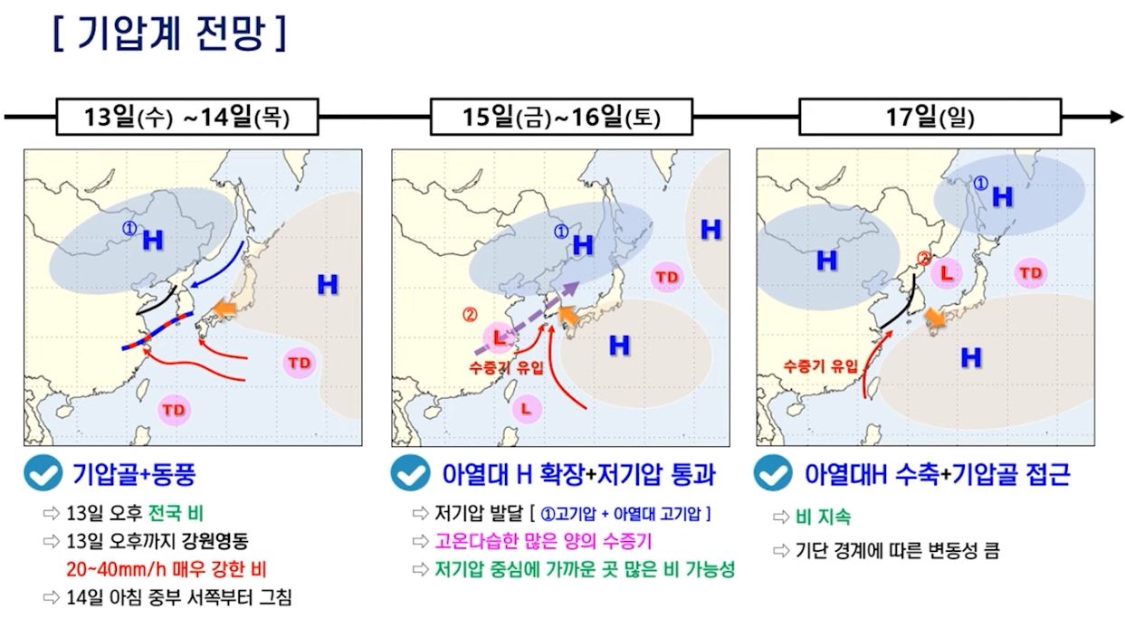 ㅡ 강수: 전국 대체로 흐리고 비, 남부지방 밤부터 소강상태