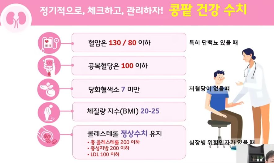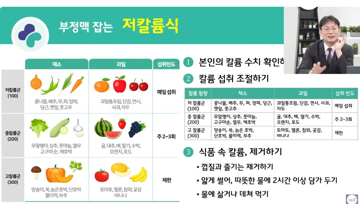 저단백식과 저칼륨식이 필요한지는 자기 콩팥병의 단계와 합병증을 봐가며 의사가 말해준다.