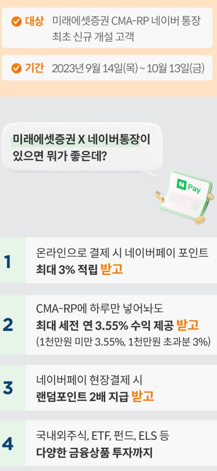 미래에셋증권 X 네이버통장: CMA-RP 네이버통장 본문