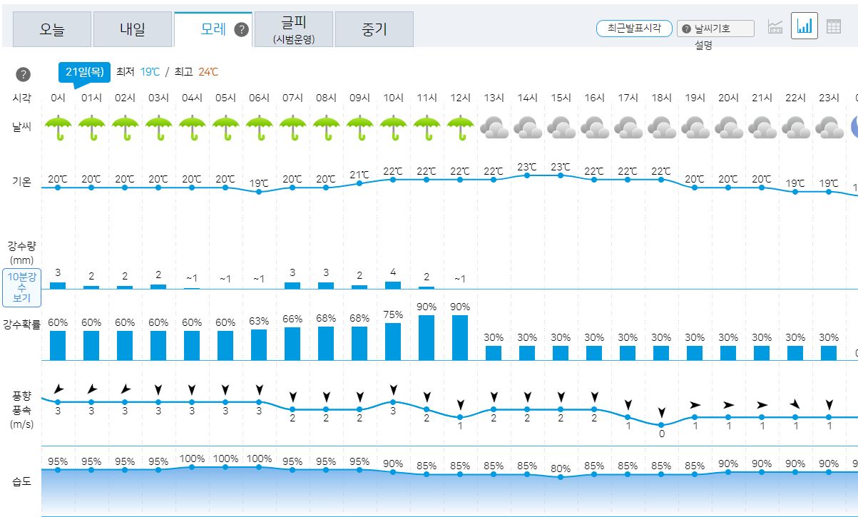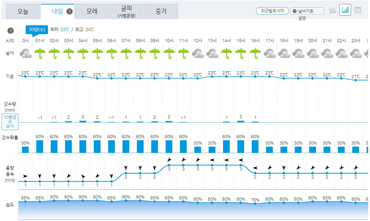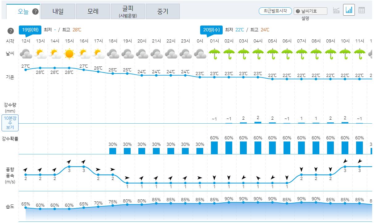 2023.9.19.화. 일기예보(기상청): 내일, 모레 비 있음 본문