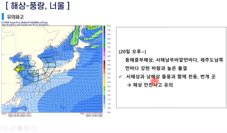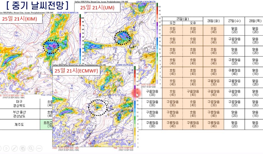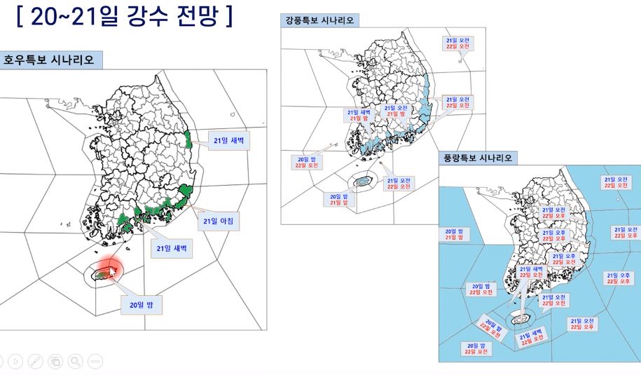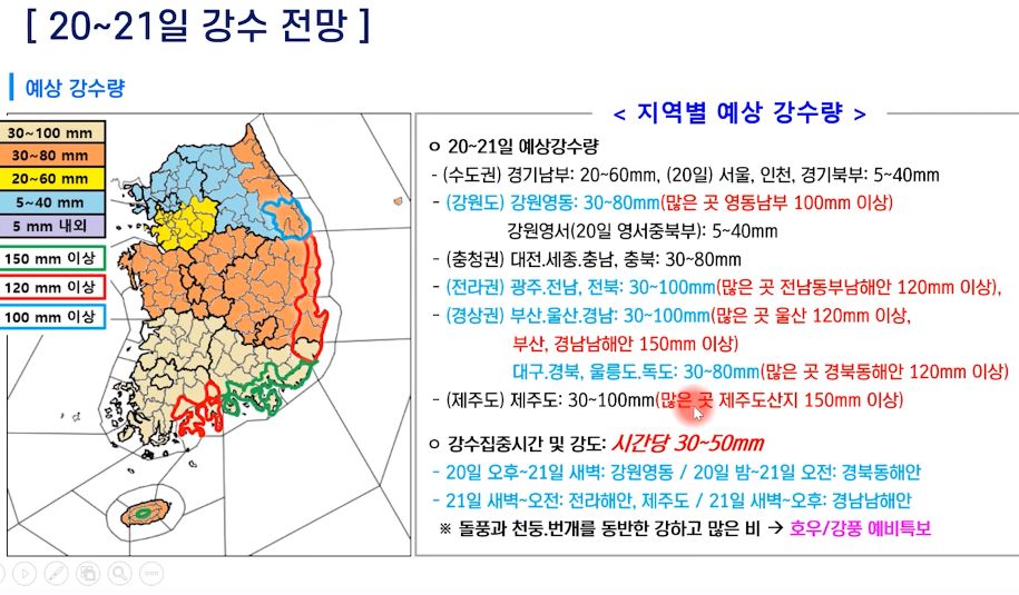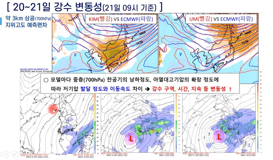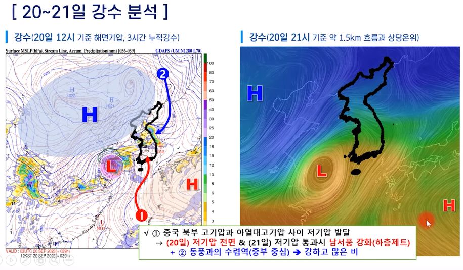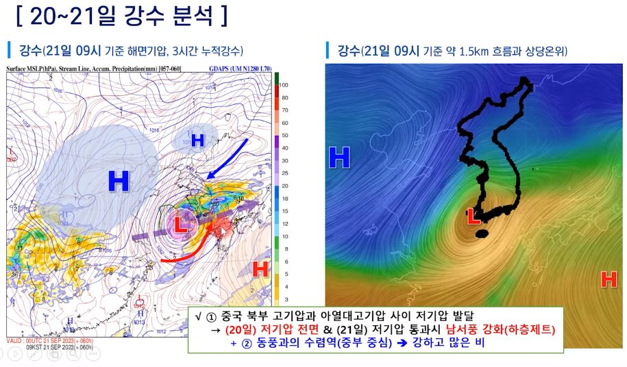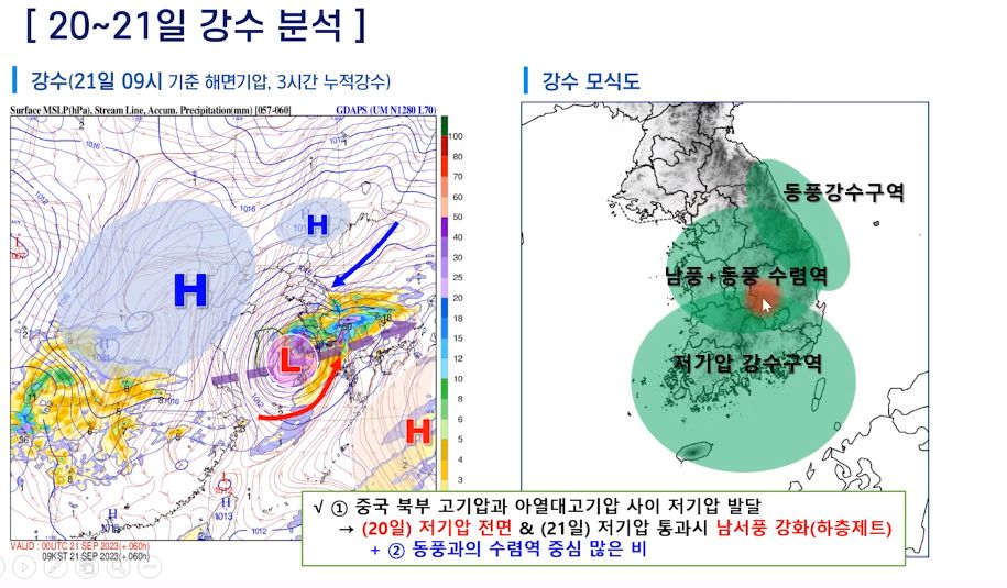 [기상청 브리핑] 20~21일 전국 비 확대! 저기압과 동풍 영향? 2023.9.19.저녁