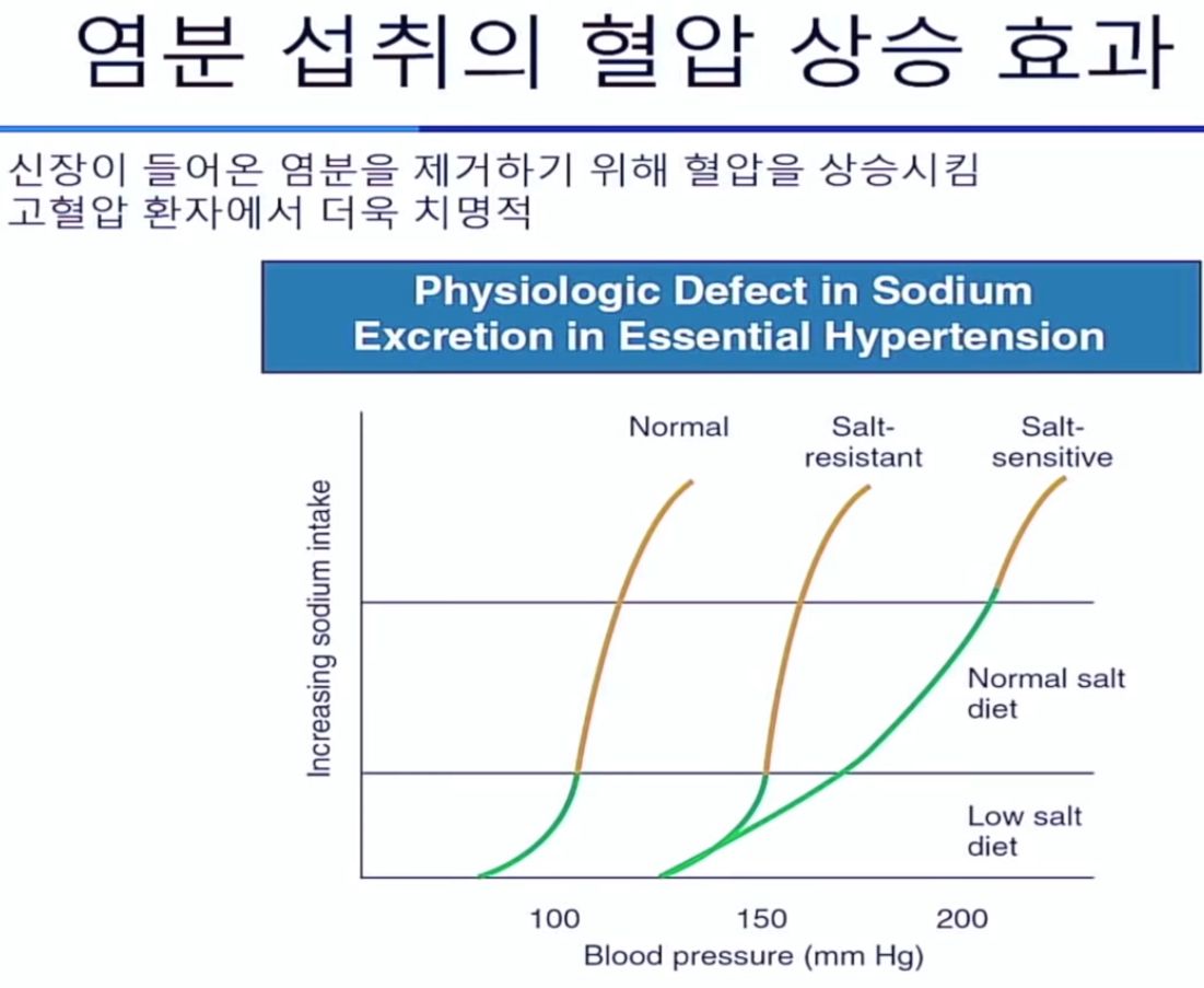ㅡ 물과 전해질 평형 유지 (고혈압, 부정맥, 폐부종)