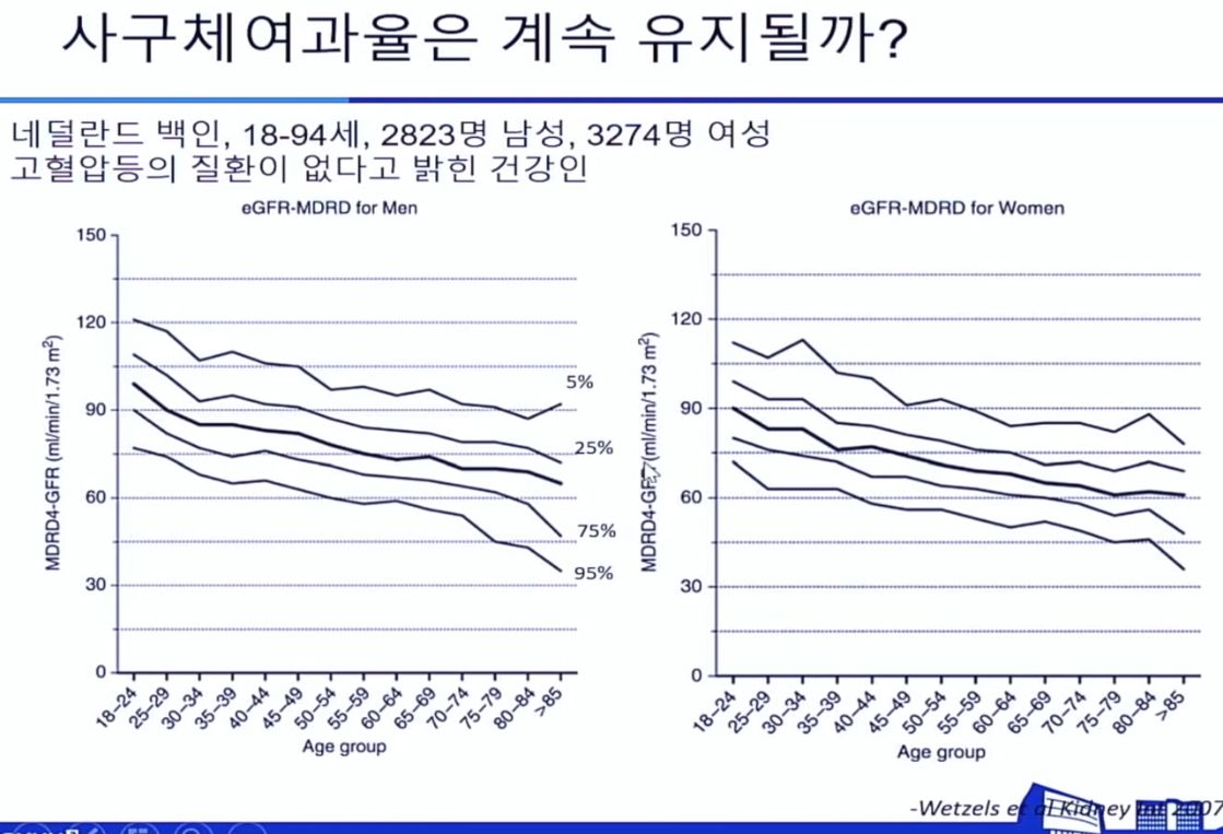 건강한 사람들도 나이들수록 사구체여과율은 조금씩 내려간다.