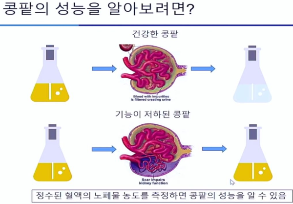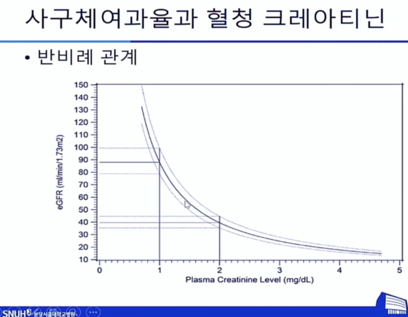혈청 크레아티닌농도가 낮을수록 좋고, 사구체여과율 수치는 높을수록 좋다.