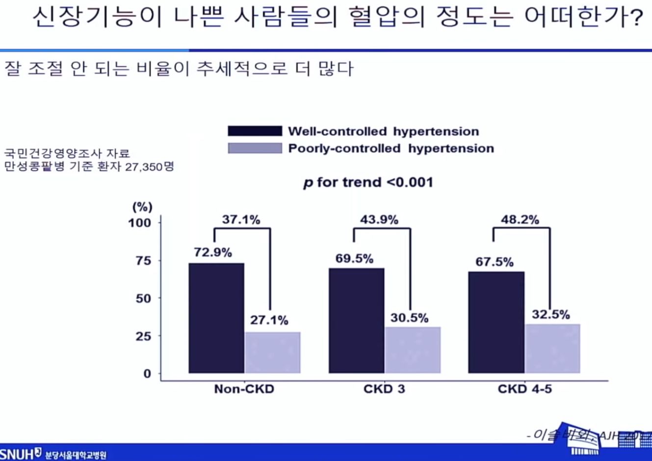 신장기능이 나쁜 사람들의 혈압은 어떤가? 혈압도 안 좋은 사람이 늘더라.