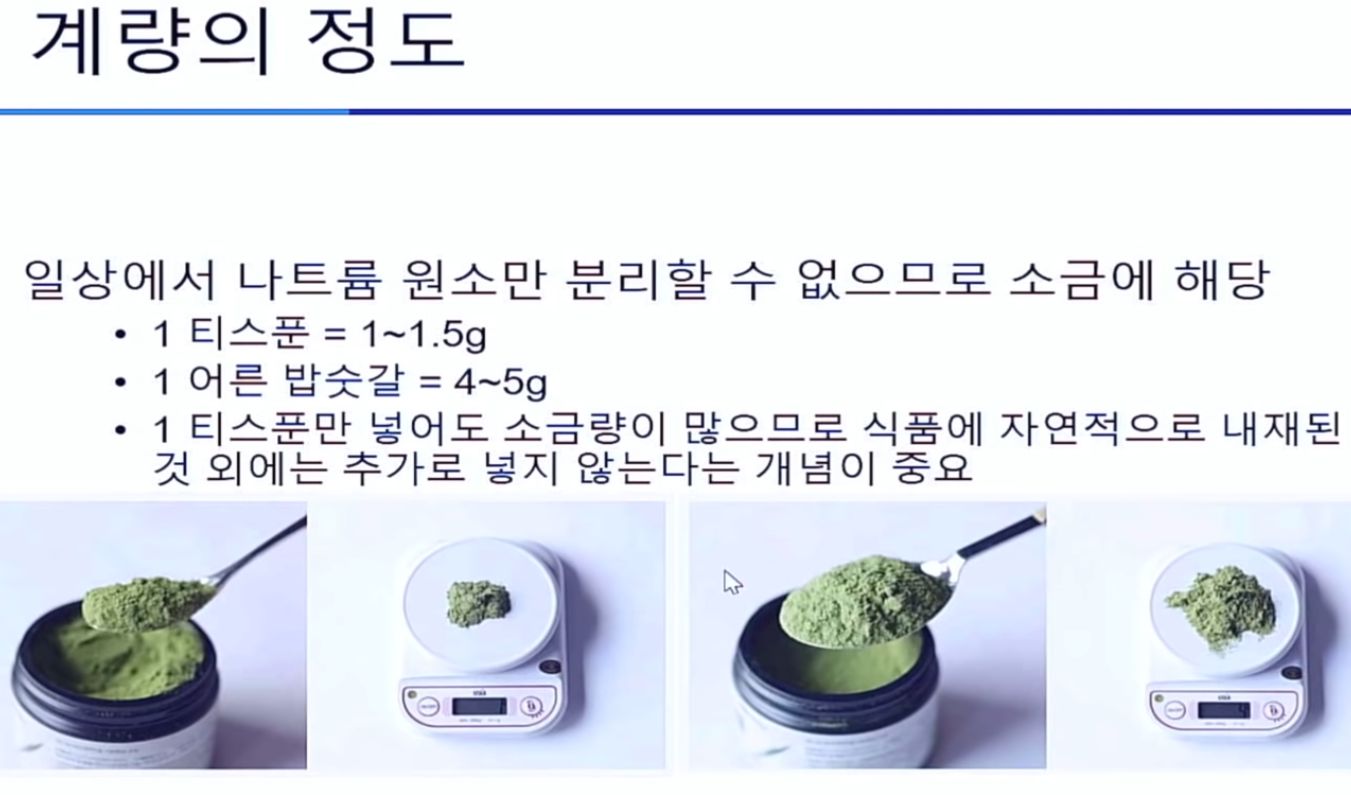 1일 소금 섭취량은 나트륨으로 2그램이고 소금으로는 5그램