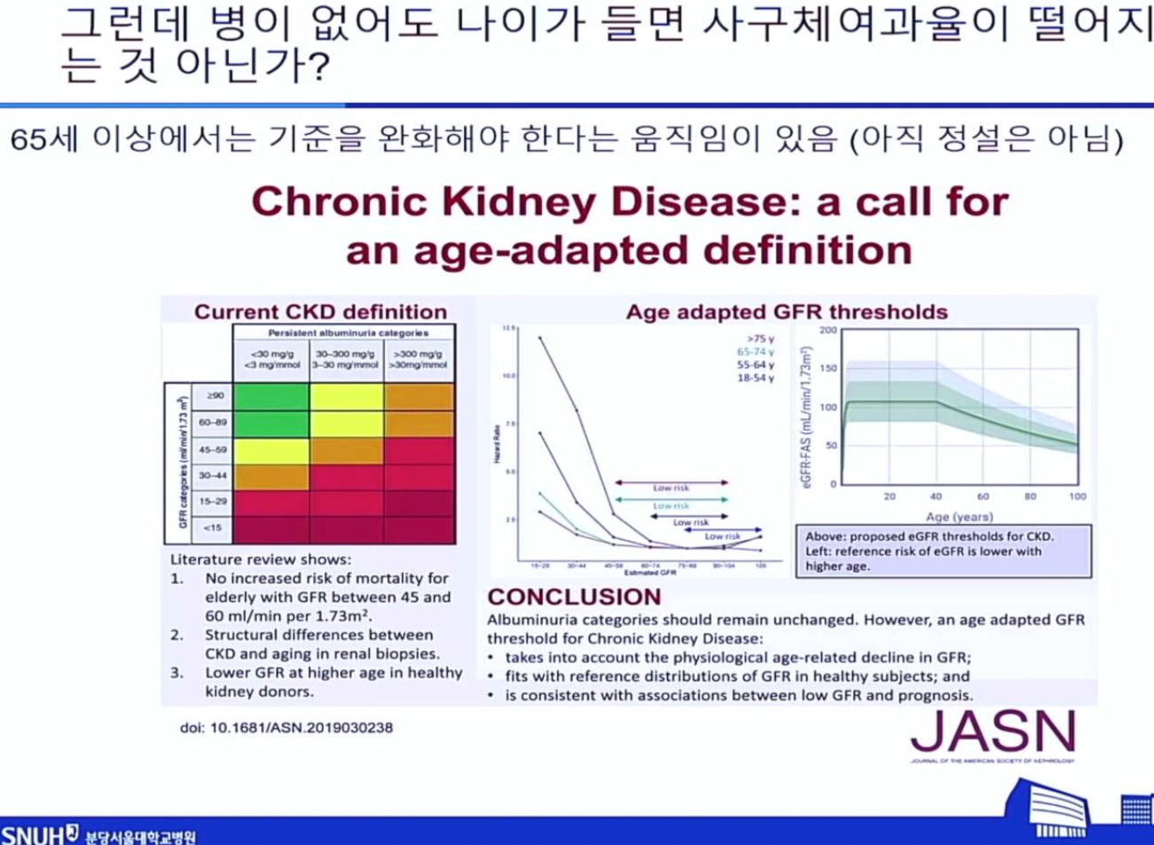 - 그리고 마찬가지로, 연세많은 사람들이나 다이어트를 너무 해서 몸에 근육이 너무 없으면, 실제 콩팥상태보다 사구체여과율이 나은 것처럼 보일 수도 있다. [본문으로]