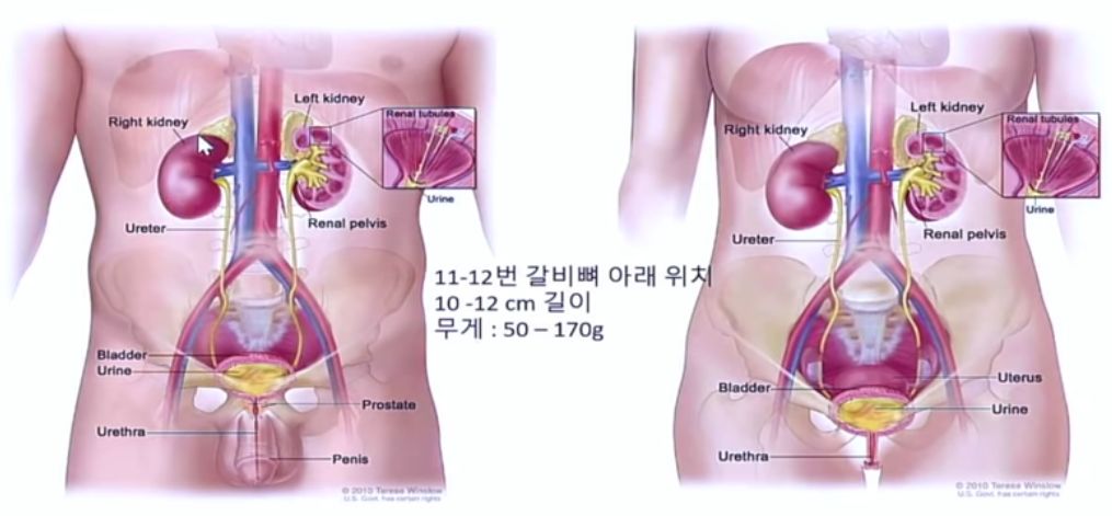신장은 등갈비뼈 바로 아래쯤에 있다. (덧말. 그래서 그 자리가 아프면 신장을 의심해보라는 말도 본 적 있다)