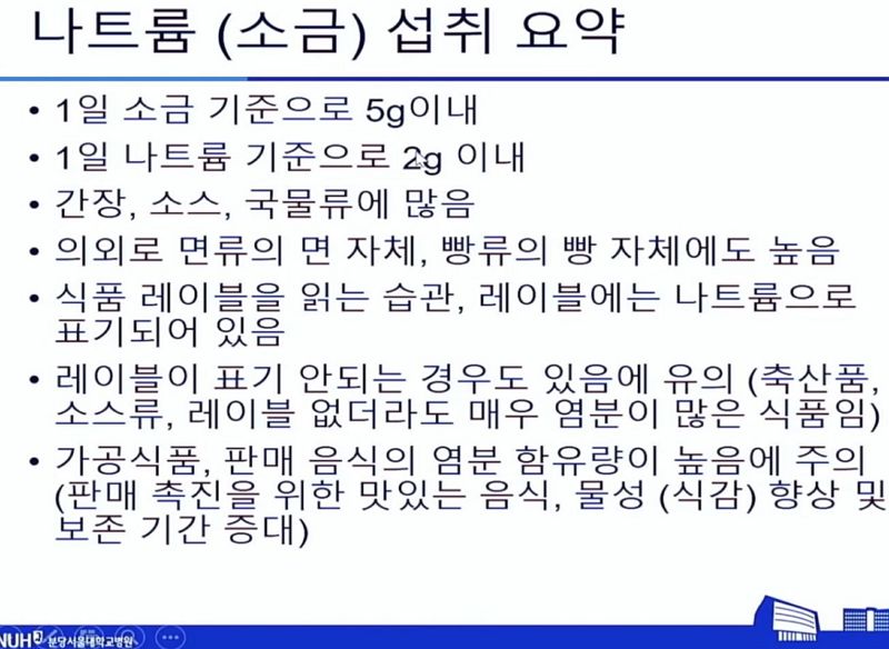 ㅡ 모든 한국인은 나트륨(소금)을 적게 먹어야 한다.