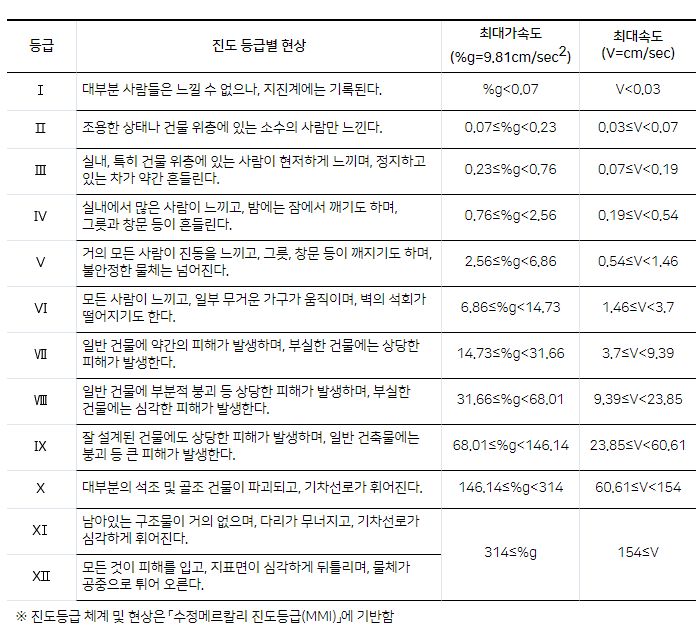 진도 등급별 현상 - 기상청 날씨누리