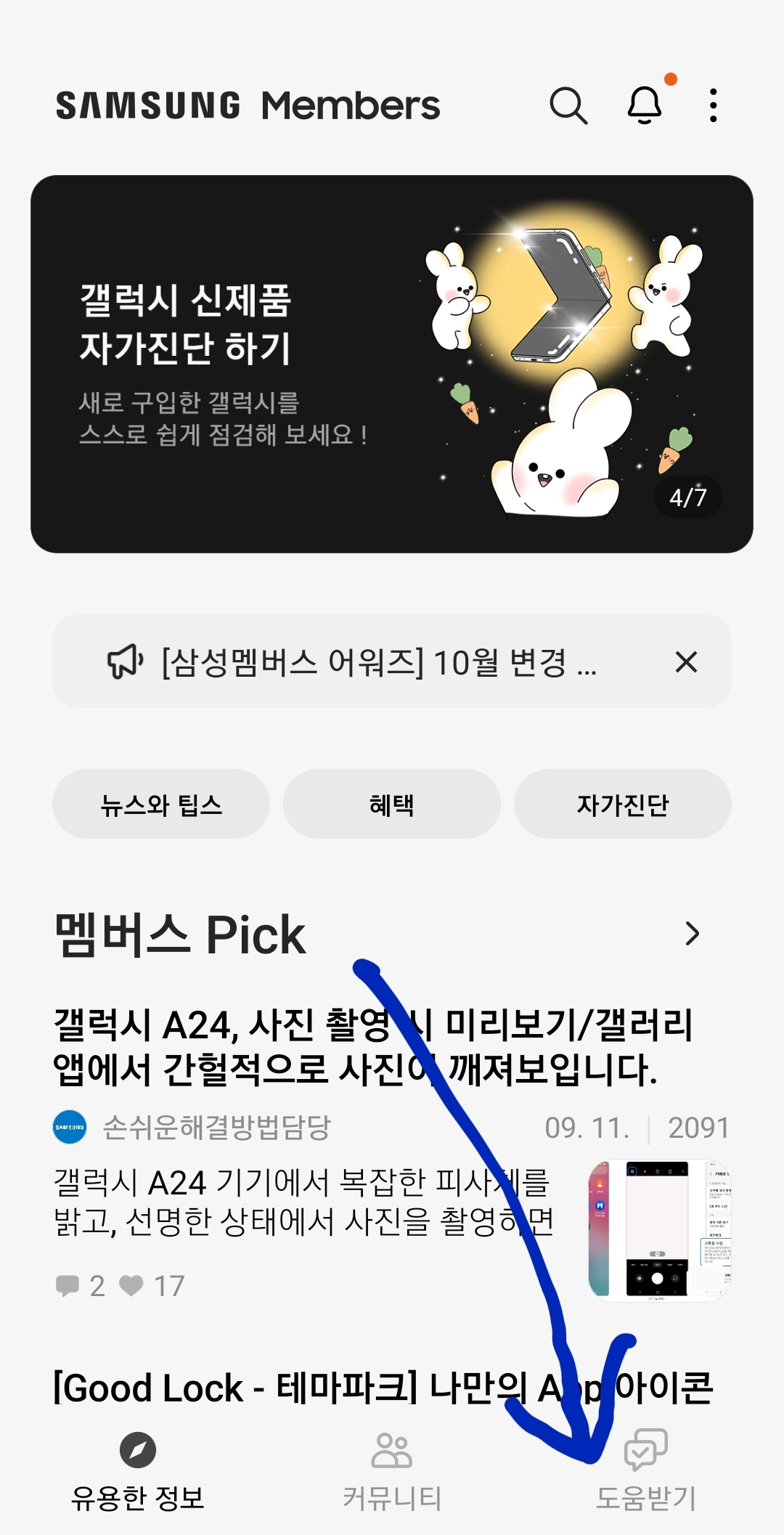 삼성멤버스앱에서 갤럭시 배터리상태확인, 그 외 기능상태확인 본문