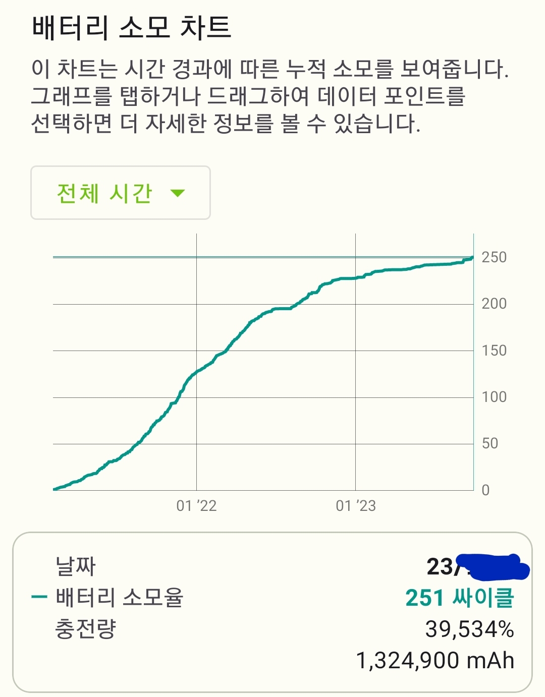 에서도 충전사이클 횟수를 볼 수는 있습니다. 하지만, 그건 같이 보여주는 그래프도 그렇고 해서 앱을 깐 다음부터의 카운트같은데.. (단정은 못하겠지만요)