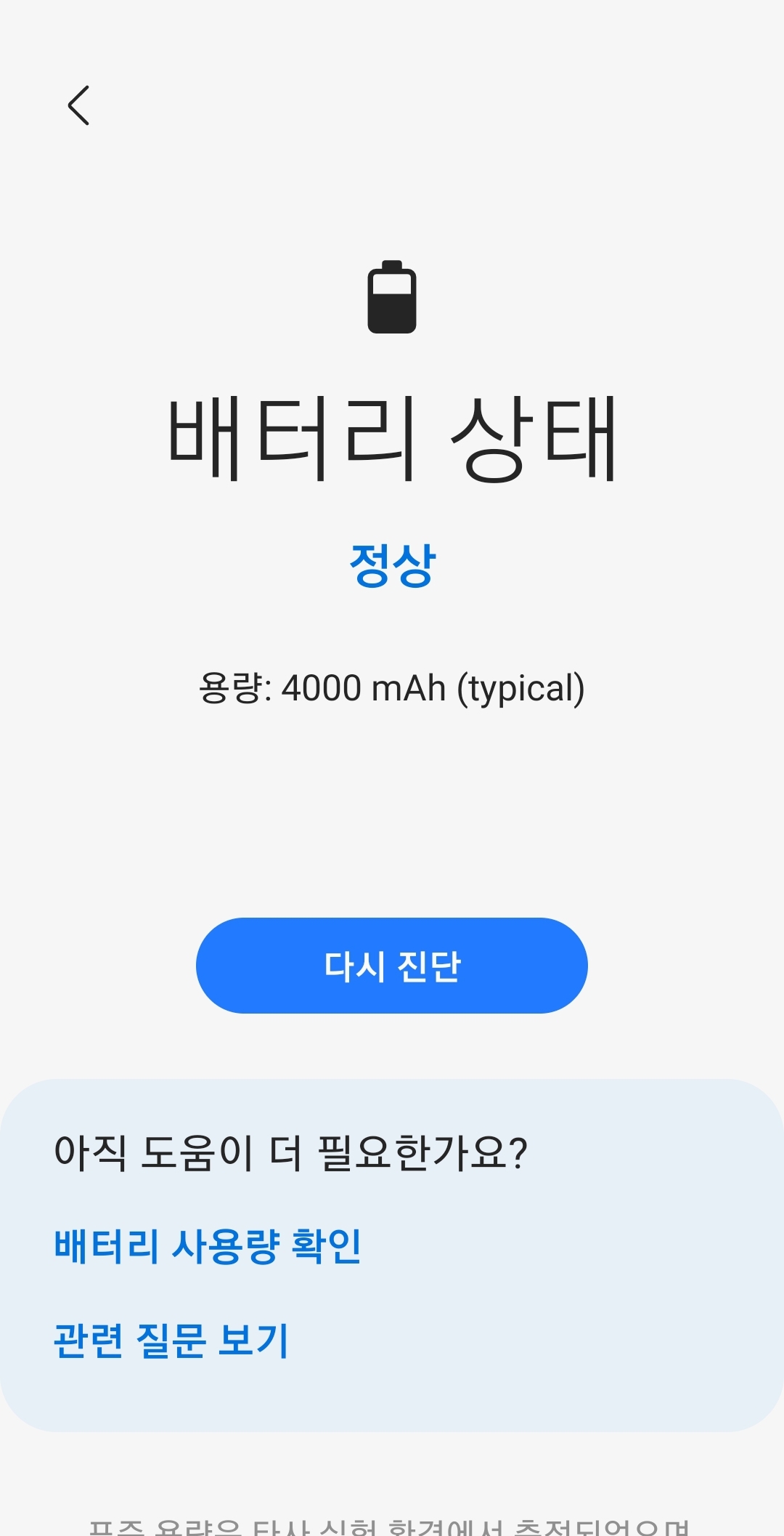 이 앱으로 배터리상태를 체크해본 글을 검색해보니, 삼성멤버스앱의 과거 버전따라 출력내용이 달랐는지 아니면 단말기 기종따라 그랬는지 모르겠지만, 조금씩 다른 화면을 볼 수 있었습니다.