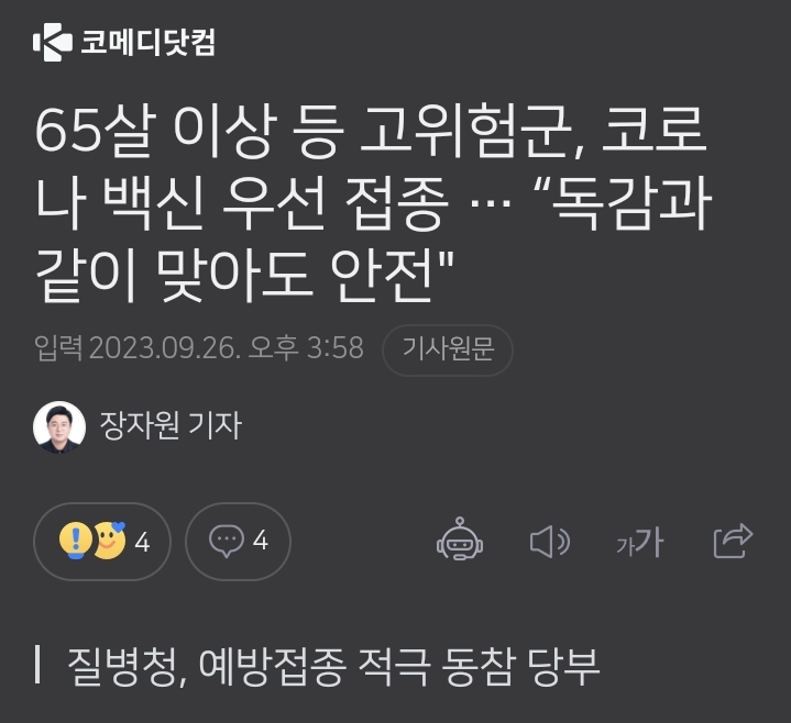 2023~2024 절기 코로나19 예방접종: 65세 이상, 면역저하자, 감염취약시설 구성원은 10월 19일부터 본문