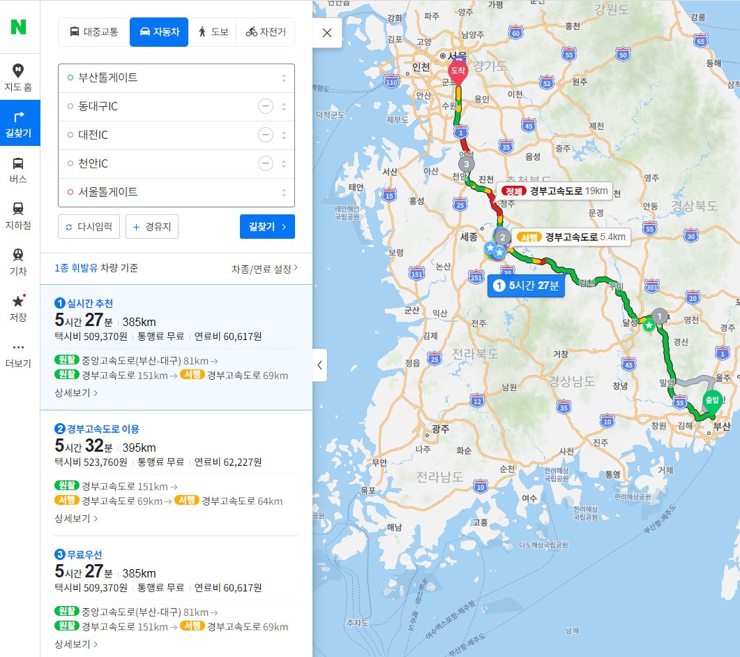 (일부러 그쪽 길을 안내시키려고 IC를 몇 개 추가했습니다)
