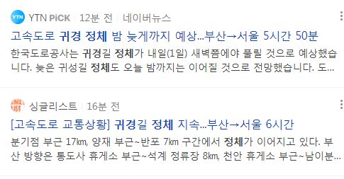 '귀경 정체'의 네이버 뉴스검색 결과입니다.