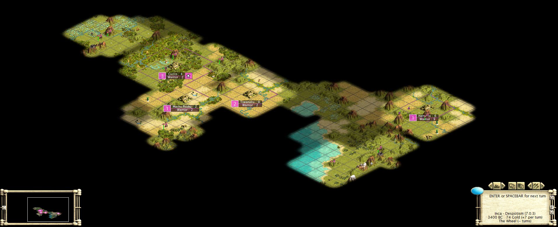 - 초기 8타일에 되도록 숲과 언덕이 있는 지형. Warrier가 4턴에 뽑힌다.