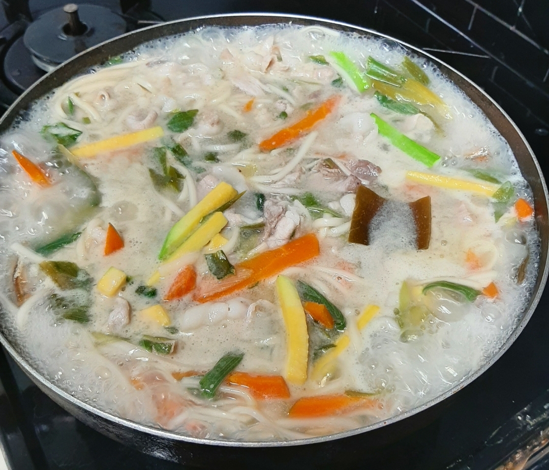 ㅡ 뽀얀 돼지고기 파국물이 요즘같은 날씨에 마시기 좋다.