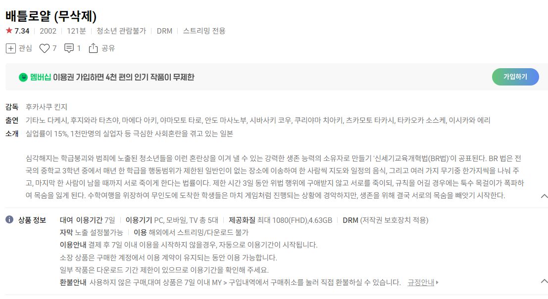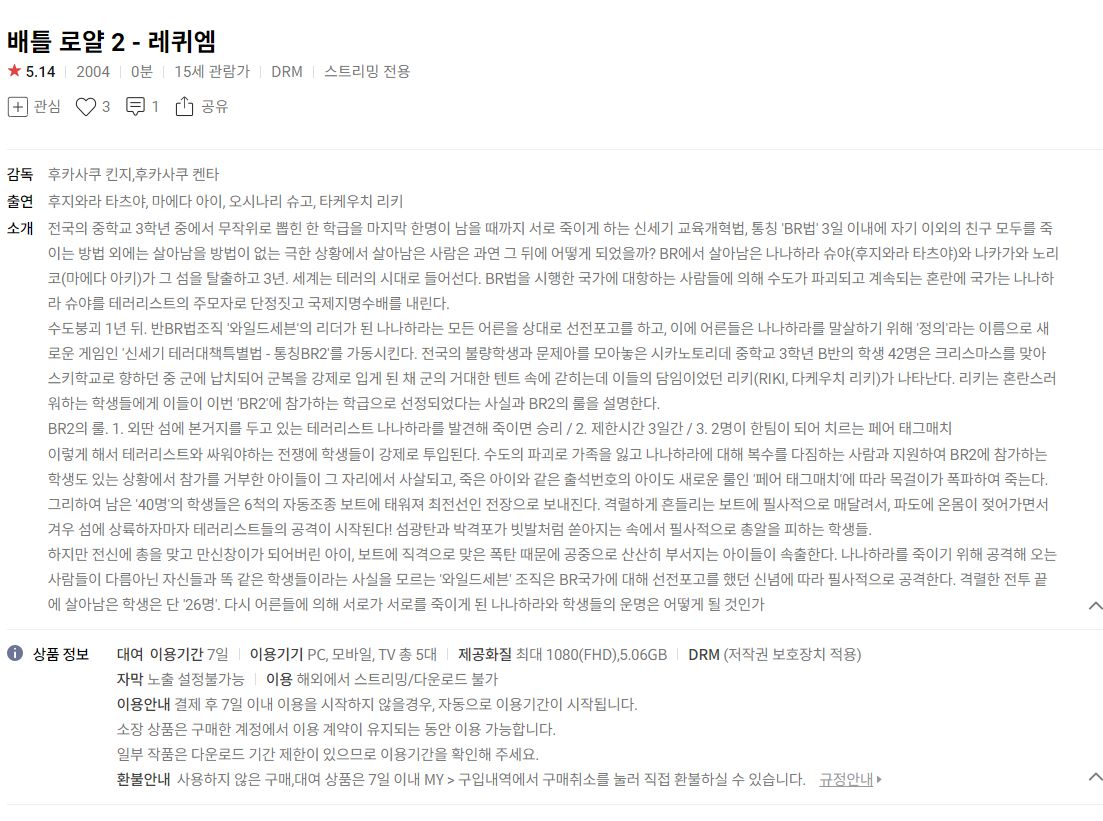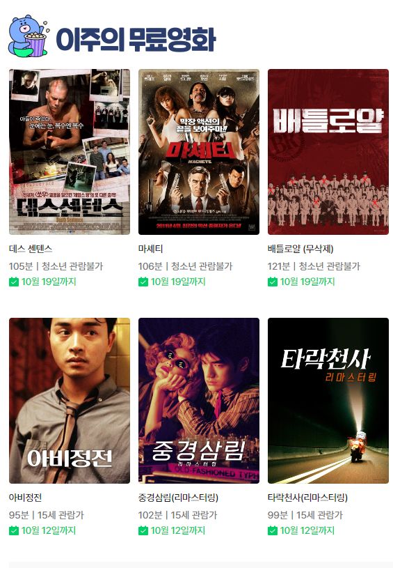 (네이버시리즈온 무료영화) 배틀로얄 1, 2, 마세티 등 본문