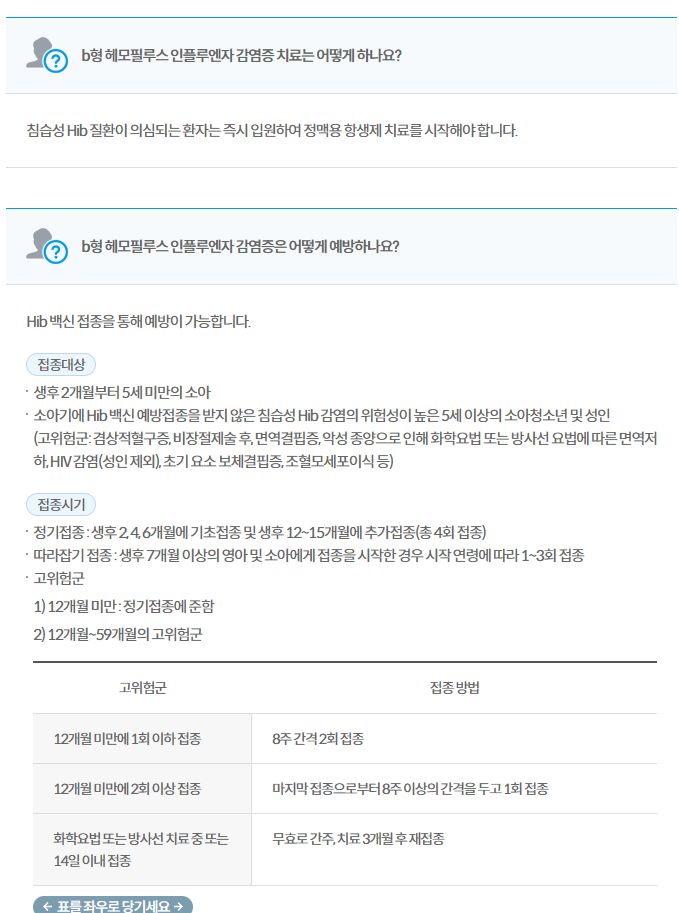 b형 헤모필루스 인플루엔자(Haemophilus influenzae type b(Hib)) b형 헤모필루스 인플루엔자균(Haemophilus influenzae type b)은 뇌수막염, 후두개염, 폐렴, 관절염, 봉와직염 등 중증 침습성 감염 질환의 원인이