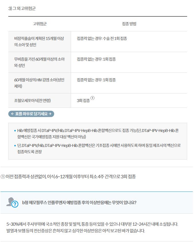 예방접종대상은 생후 2개월~5세 미만의 소아는 다 맞아야 하는 모양이고,
