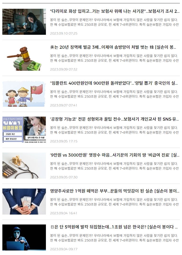 헤럴드경제 보험사기 관련 연재기사: 실손이 봉이다 2023.9