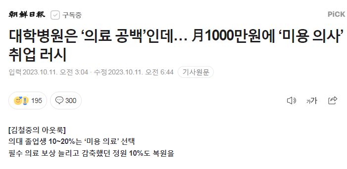대학병원은 ‘의료 공백’인데… 月1000만원에 ‘미용 의사’ 취업 러시