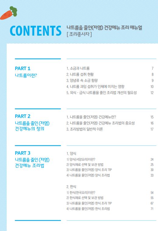 나트륨을 줄인 건강메뉴 조리 매뉴얼