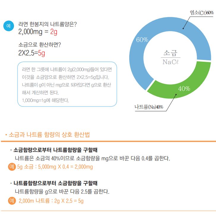 음식과 조미료에 든 나트륨/소금 함량, 계산