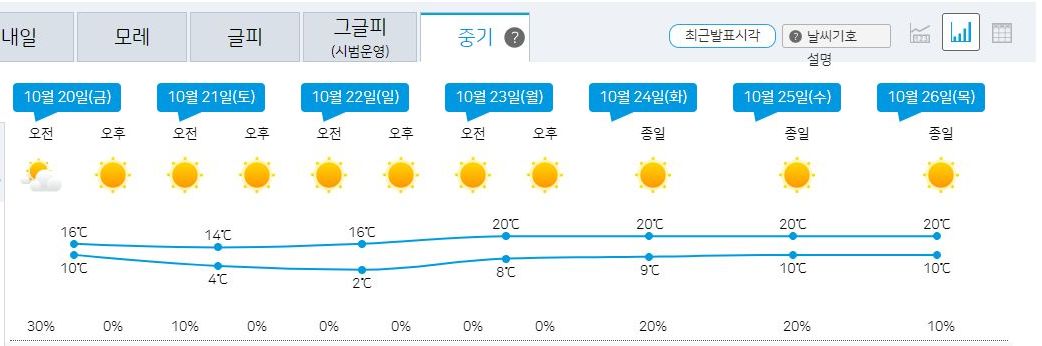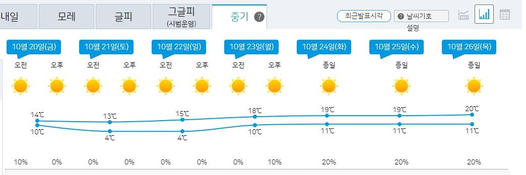 2023.10.17.화~10.26.목. 모기도 비상걸릴 쌀쌀한 날씨 (기상청 일기예보) 본문
