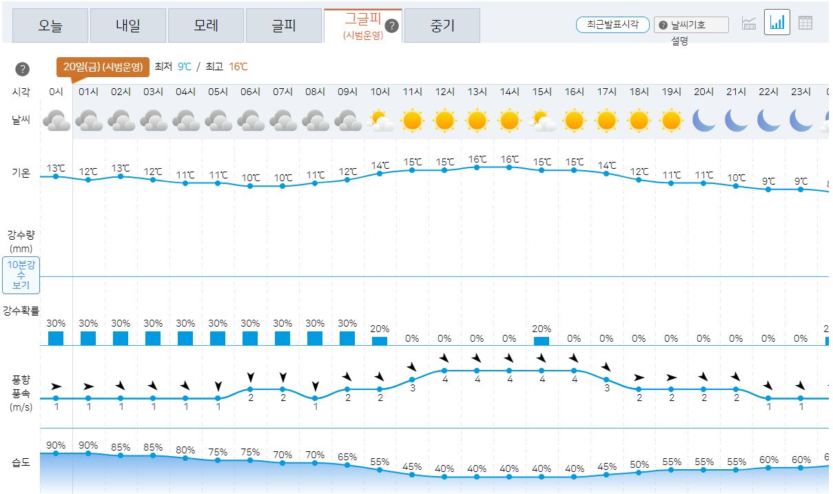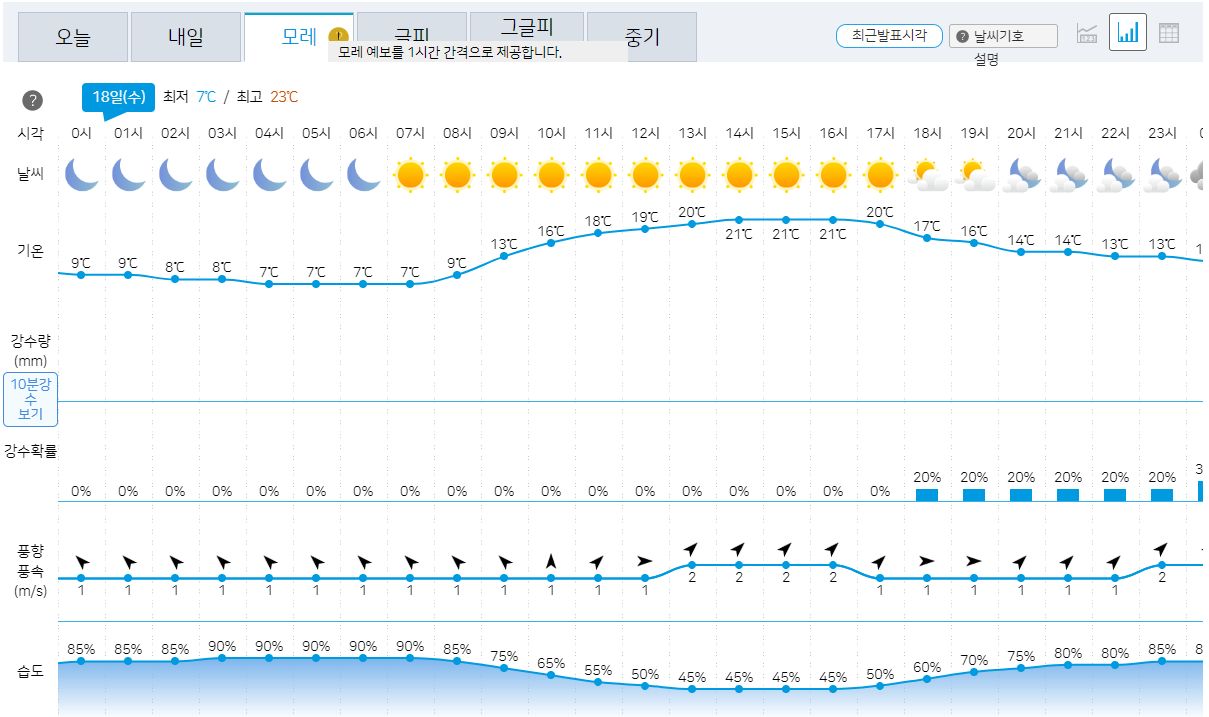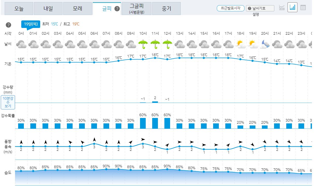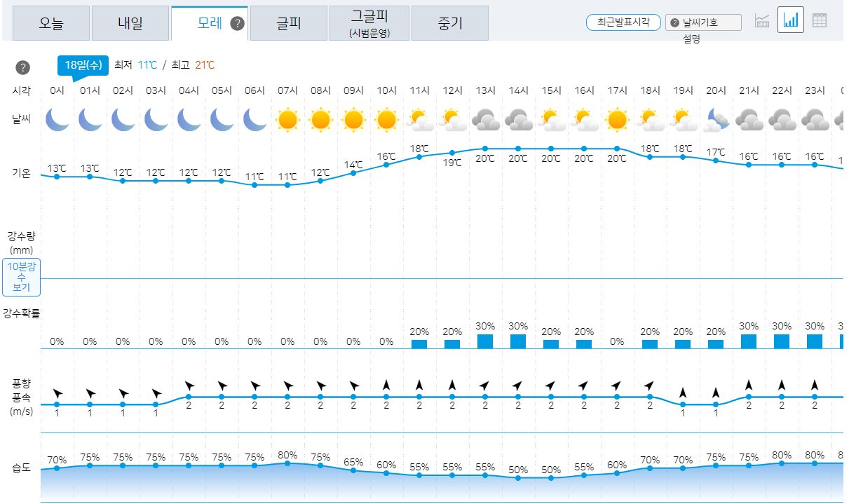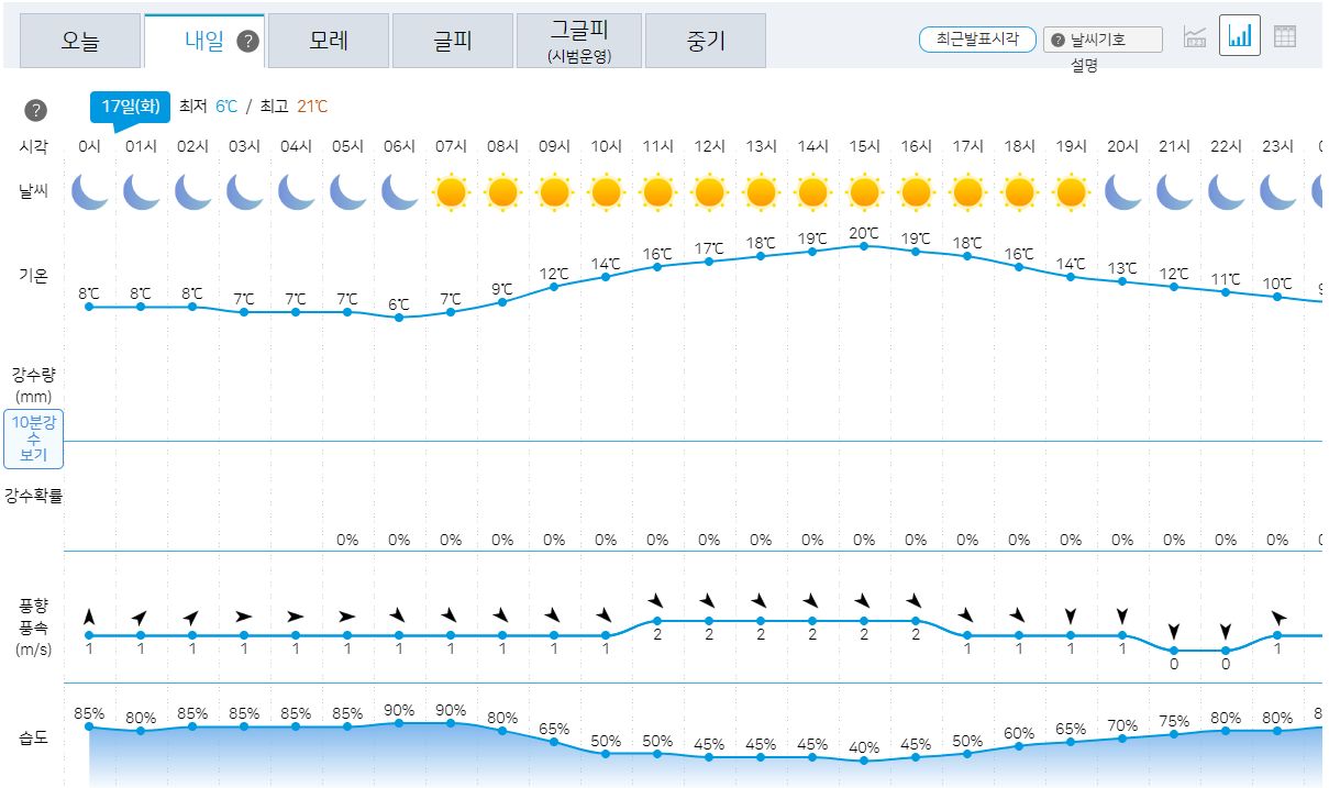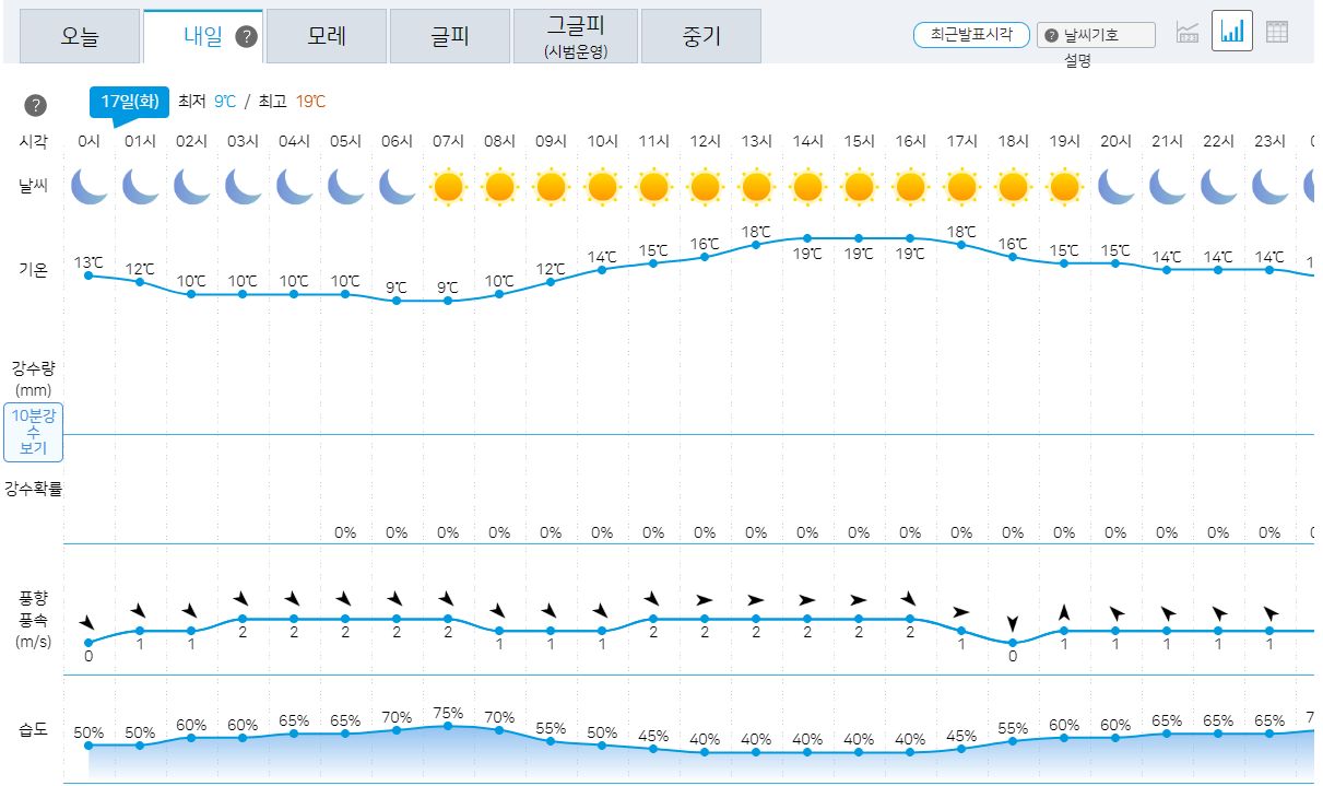 10.17일의 기상청 날씨