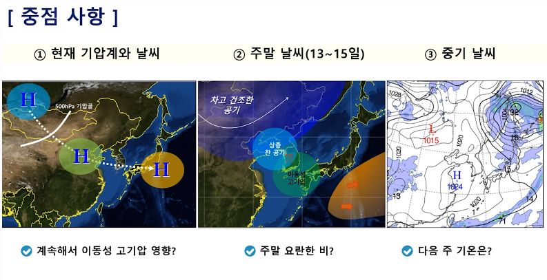 지난 주말의 중기날씨전망