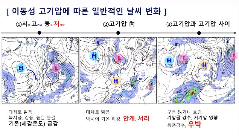 이것은 대륙쪽에서 오는 찬 바람의 영향이고