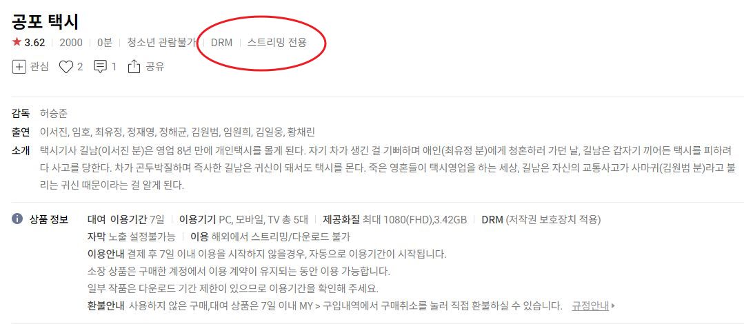 · 대여 : 다운로드 후 일정기간만 재생됨