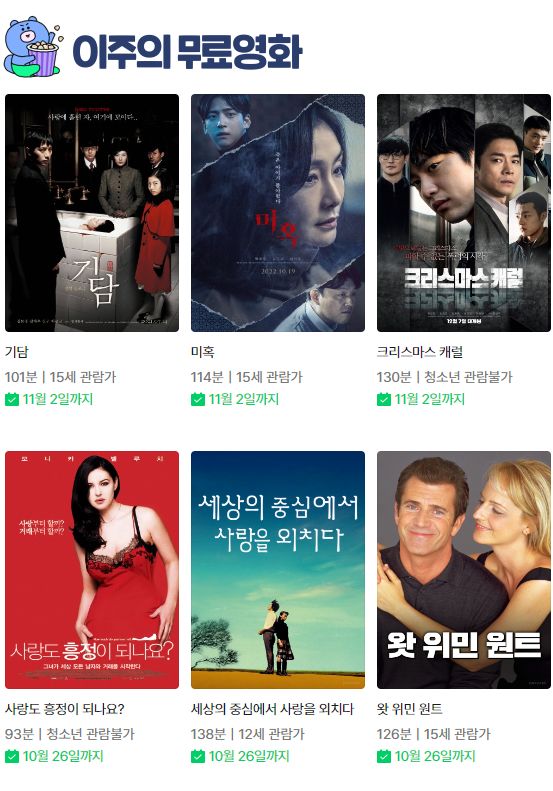 네이버 주말의 비디오방입니다. 요즘은 스트리밍만 하니까 기간내에 보고 싶을 때 보면 됩니다.