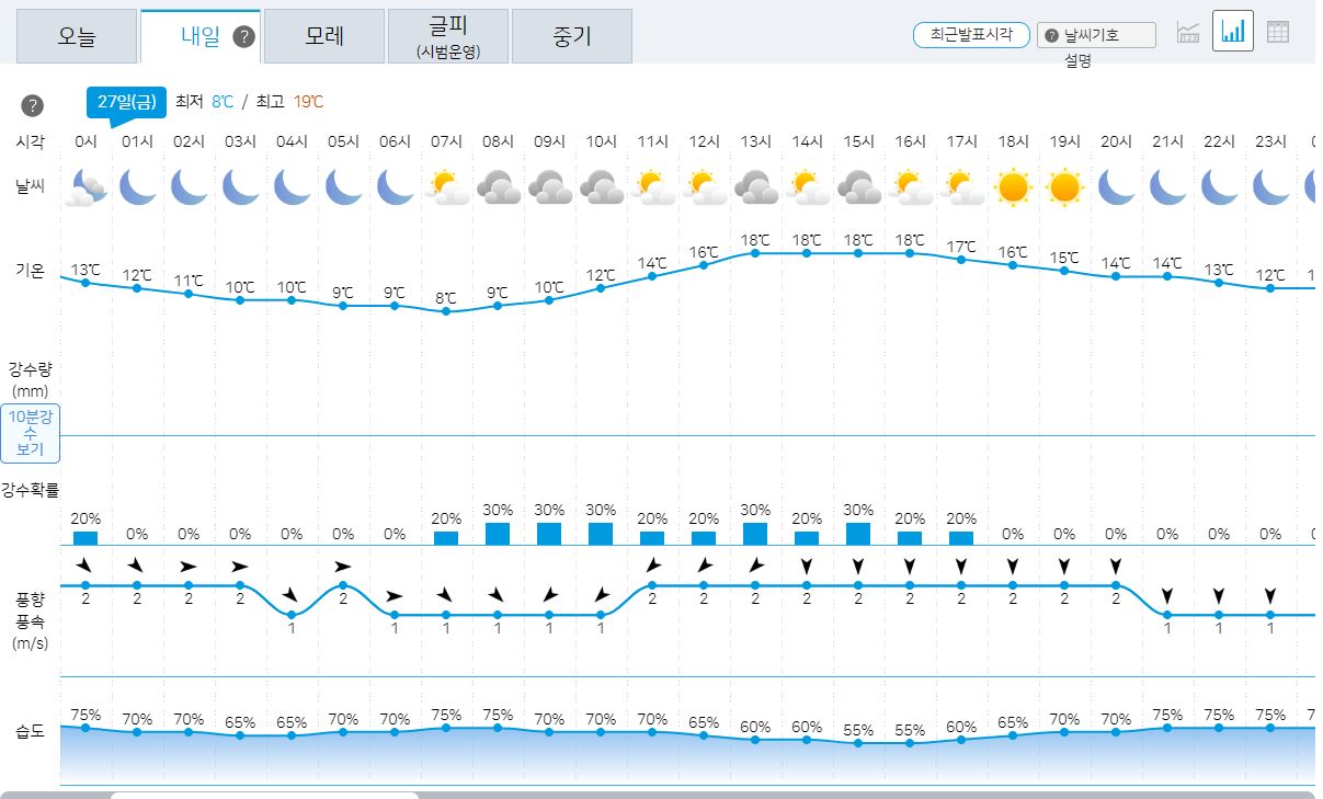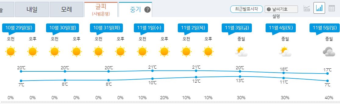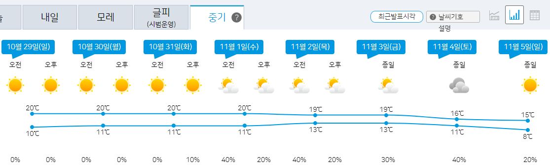 2023.10.27.금.~11.5.일. 기상청 중기날씨: 비 없음 본문
