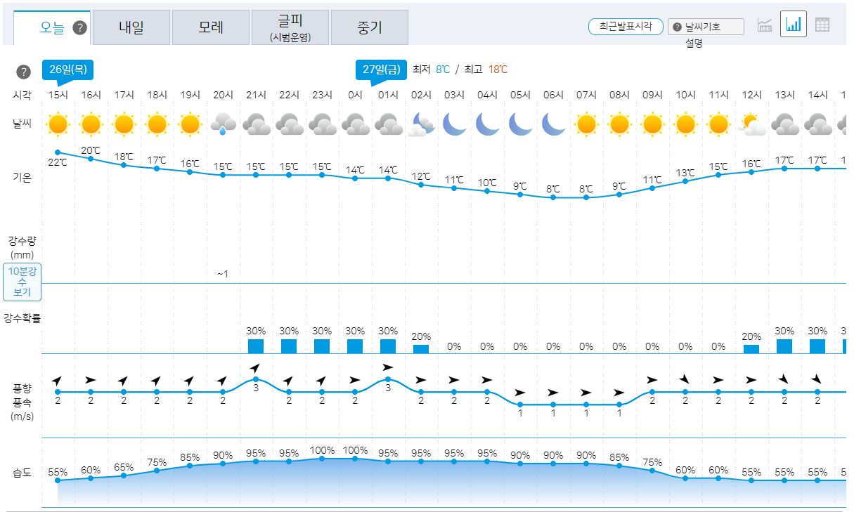 아침 최저기온은 10도 내외에서 1도 정도씩 떨어지는 정도로 조금씩 가을이 깊어갑니다.
