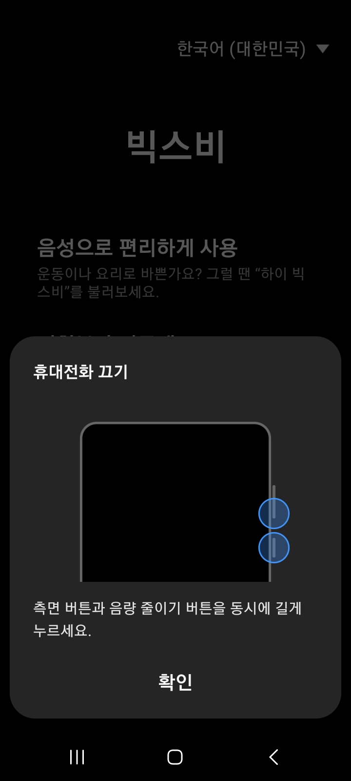 전원버튼과 바로 위 볼륨다운 버튼을 동시에 길게 눌러야 전원끄기로 들어갑니다.