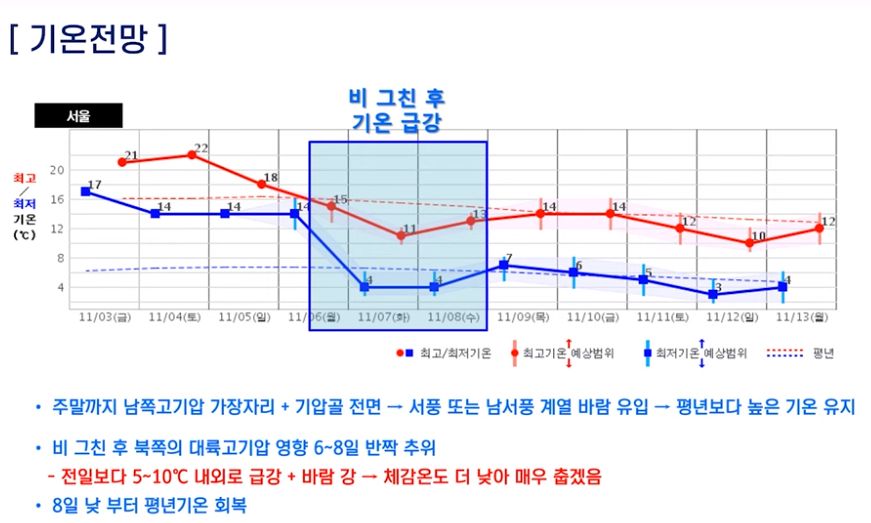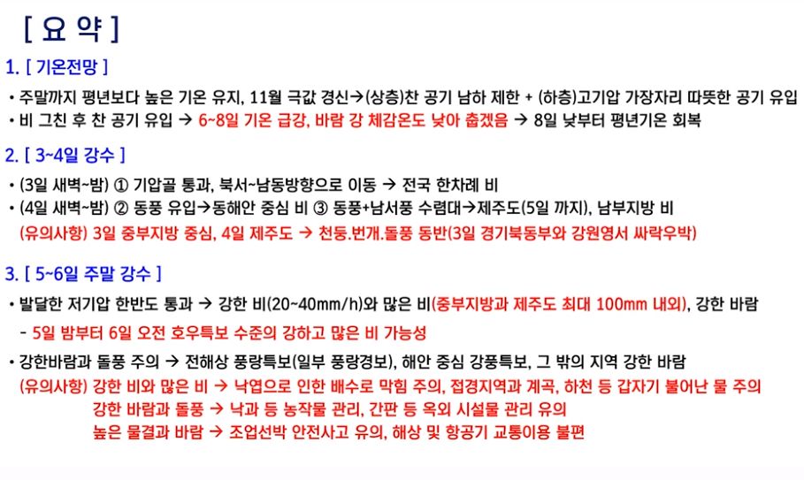 2023.11.3.금 [기상청 브리핑] 주말에 강하고 많은 비 내려요. 이후 추워지니 옷차림 신경 쓰세요!