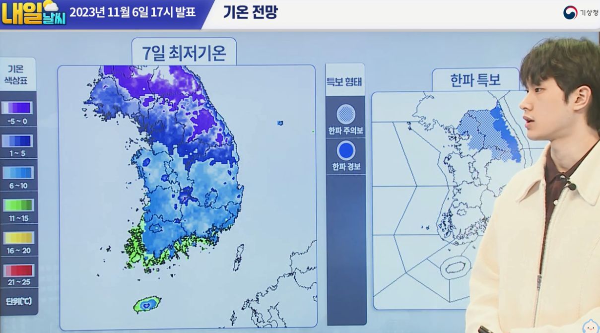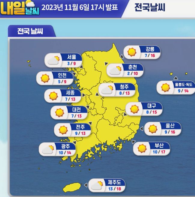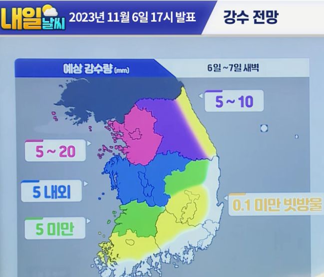 [내일날씨] 찬 바람 불고, 아침기온 뚝 떨어져요. 11월 6일 17시 기준