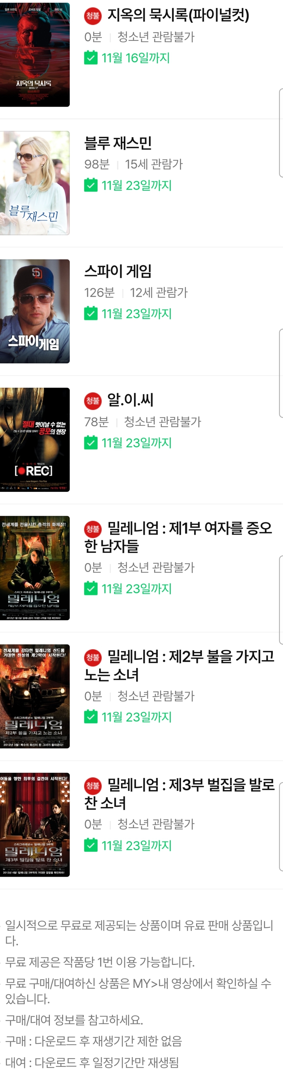 ~11.23.. 블루 재스민, 스파이 게임, 알.이.씨, 밀레니엄 1부, 2부, 3부