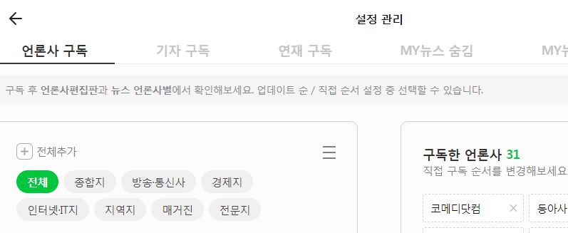 네이버 AI가 기사 하단이나 오른쪽 목록에 추천해주는 기사에서 제외할 매체도 정할 수 있도록